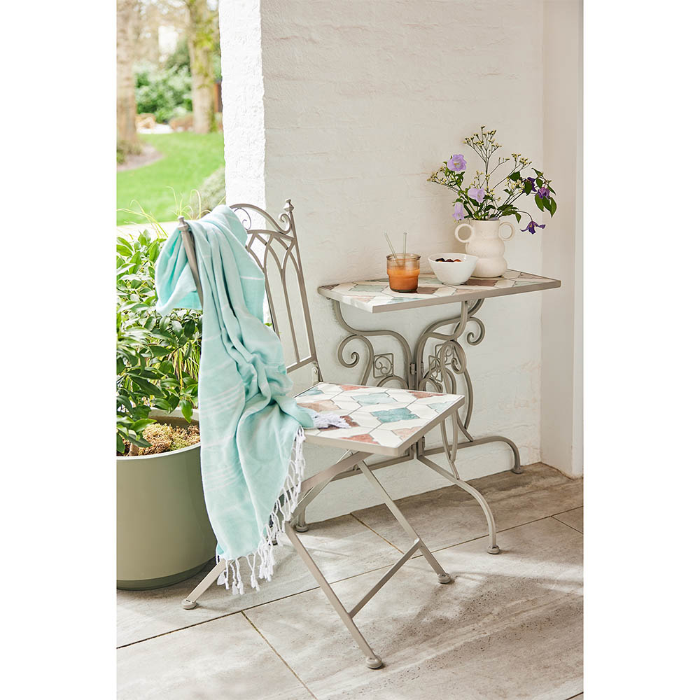 SILLA PLEGABLE MODELO BISTRO PARA BALCÓN MOSAICO MARRAKECH. MEDIDAS: 38 x 50 x 89 cm